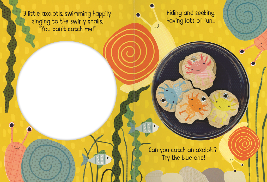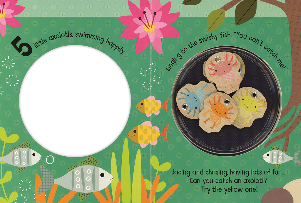 Can you catch an axolotl? Practice colors and counting as you read the book and use the magnetic fishing rod to catch the axolotls.