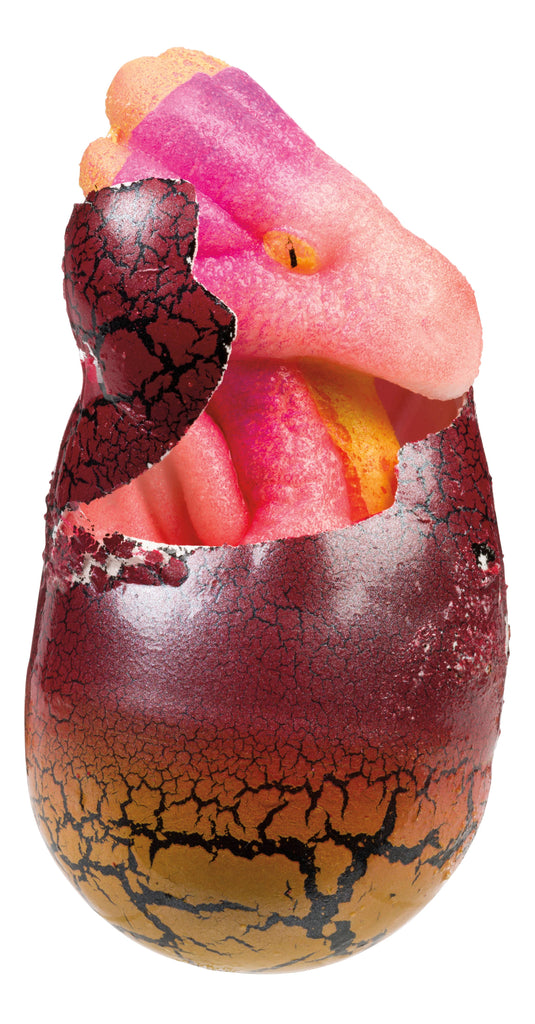 From Toysmith’s Hatchin’ Grow collection comes the popular Ginormous Grow Dragon Egg. Each 4.5-inch egg comes in its own colorful box and dissolves in water to reveal one of two colorful dragons inside. Submerge in water for 48-72 hours, and a standing or seated dragon will emerge and grow. Dragon figures are squishy and fun to play with and may grow up to 10 inches tall. Dragon may be blue, green, and yellow or pink, purple, and yellow. Pack quantity includes 8 individually boxed dragon egg water-grow toys.