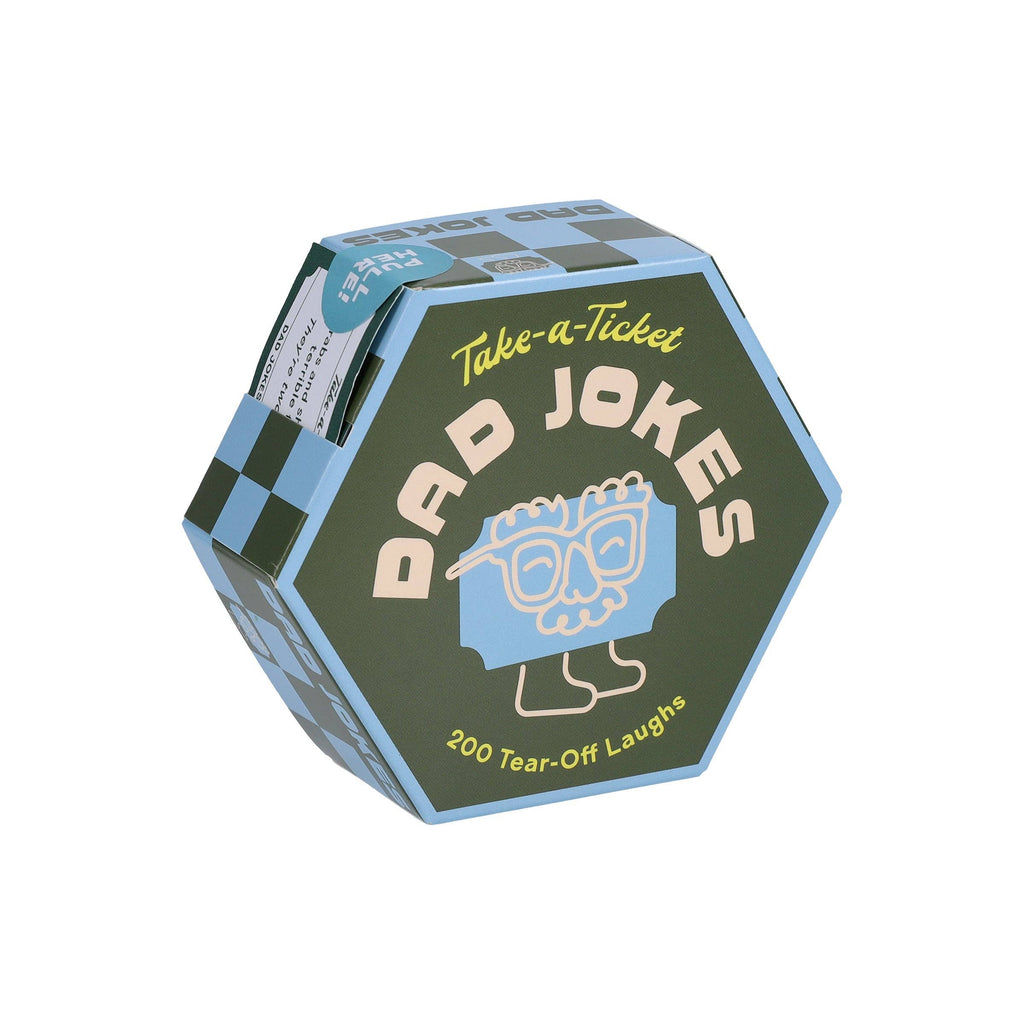 A new concept in dad humor: a take-anywhere, use-as-needed mini box of comic gold! When things get entirely too serious, this goofy little ticket dispenser always has a tear-able pun ready and waiting. Reach for it when you want to make kids laugh, adults groan, and teenagers roll their eyes. Jokes include: * What did the buffalo say when his son left for college? Bison * What do you call the littlest bear? Bear minimum * If the USA is so great, why did they make the USB? * How do you organize a party in space? You planet DAD JOKES ON DEMAND: Welcome to your one-stop joke shop in a box! Take a ticket whenever you need a good chuckle, guffaw, eye roll, or belly laugh.