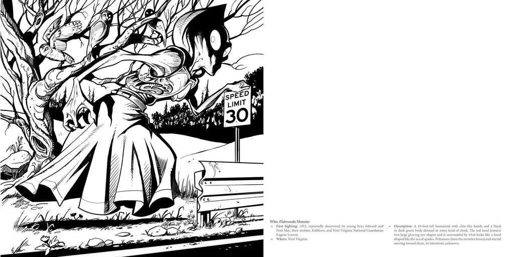 This spooky collection of 30 of the world’s creepiest cryptids is guaranteed to make your spine tingle. Color your way from Bigfoot and the Mothman to Skin-Walkers, Chupacabra, Mngwa, Yeren, and more, learning a little bit about their history as you go. With fun facts, trivia, and real-life encounters accompanying each spooky coloring page, you’ll learn exactly why you should fear each cryptid, and why they should be revered. Break out your colored pencils and get coloring.